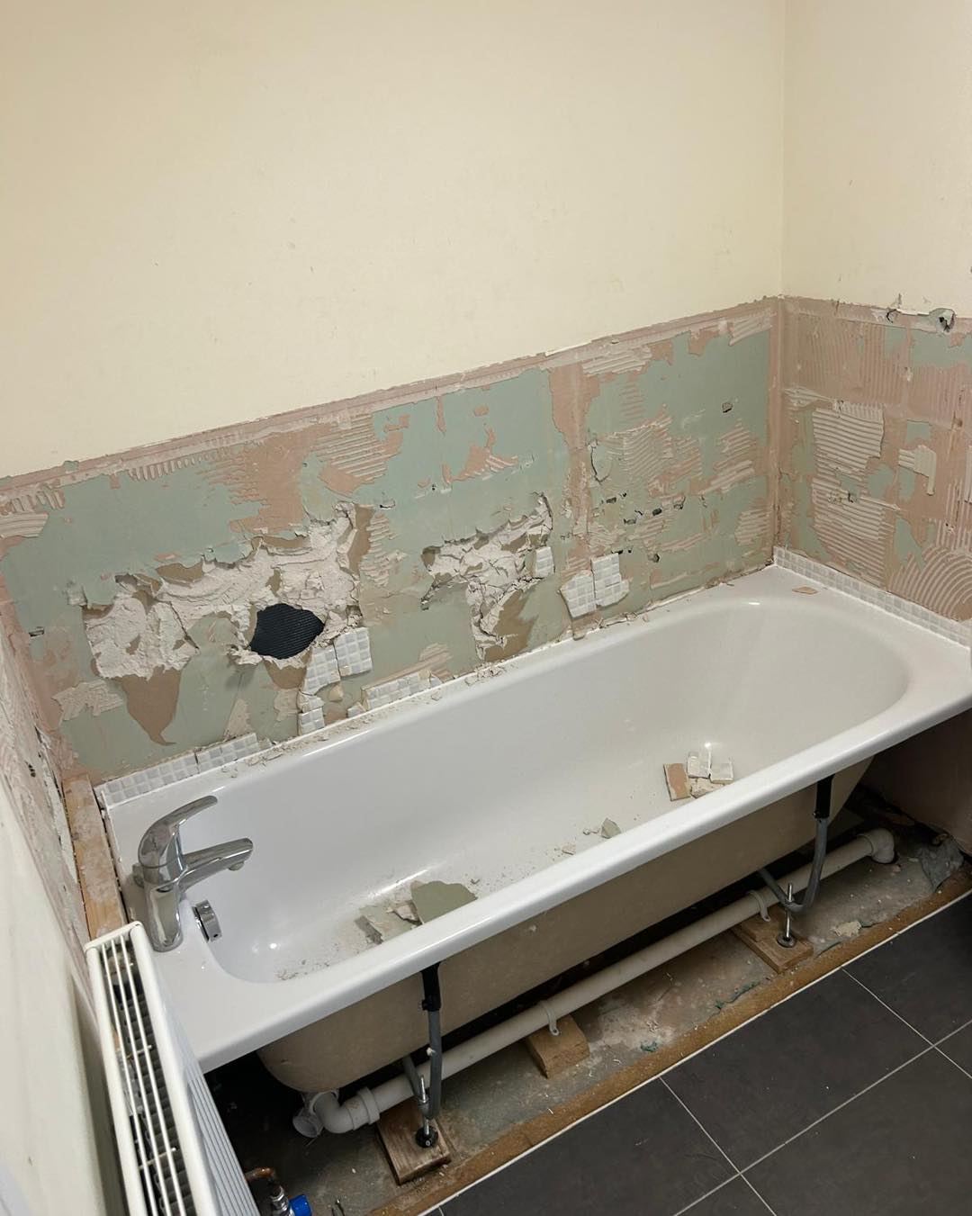 Unsere Handwerker starten mit den Abriss- und Vorbereitungsarbeiten. Dank unserer staubfreien Renovierung kannst du weiterhin in deinem Zuhause bleiben.